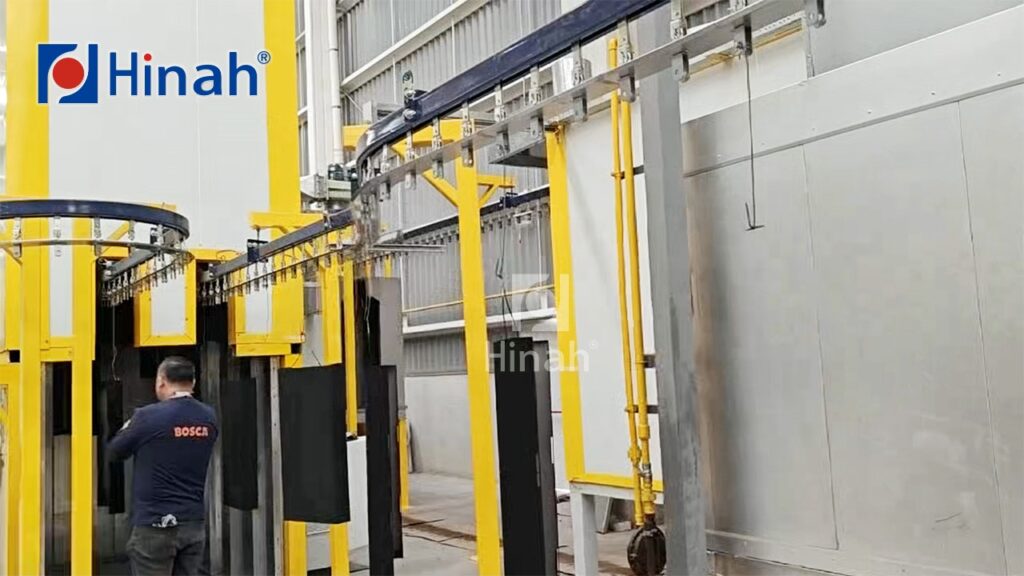 Efficiency depends on how well you integrate pre-treatment with your transport system. For a continuous powder coating line, you must design spray tunnels to match the exact speed of your overhead conveyor. This synchronization ensures the parts spend the correct amount of seconds in each chemical stage. If the conveyor moves too fast, the chemicals won’t react. If it moves too slow, the metal might flash-rust before it reaches the dry-off oven.
