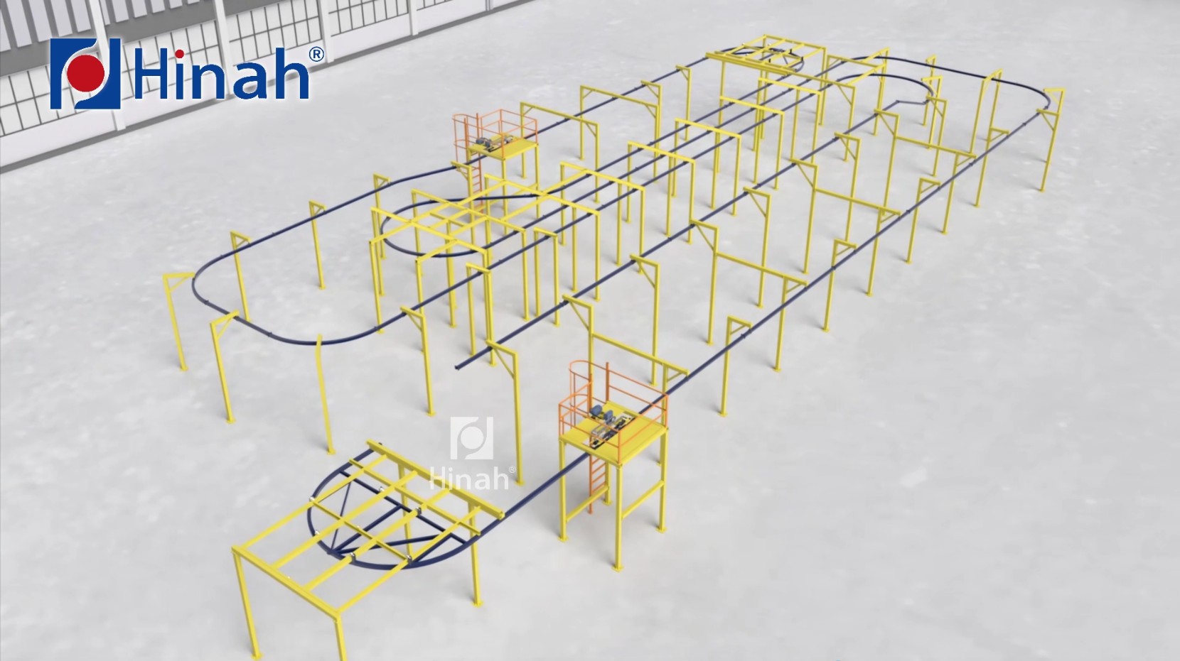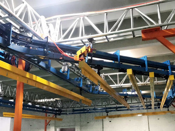 Automated conveyor system in powder coating line