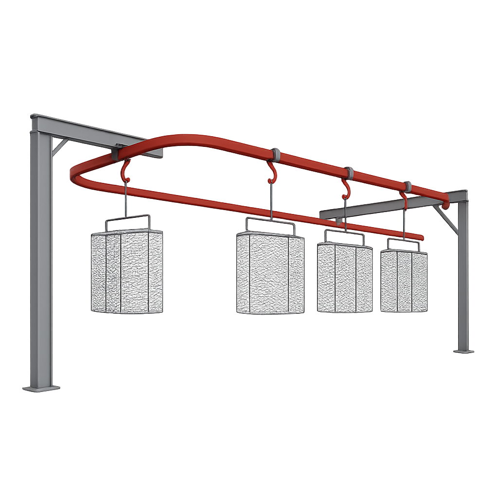 A powder coating conveyor system is an integrated solution designed to efficiently transport components through the entire coating process—from pretreatment and powder application to curing and cooling. Our systems prioritize precision, sustainability, and adaptability, featuring three conveyor configurations to suit varying production scales: automatic conveyor, power and free conveyor, and manual conveyor.